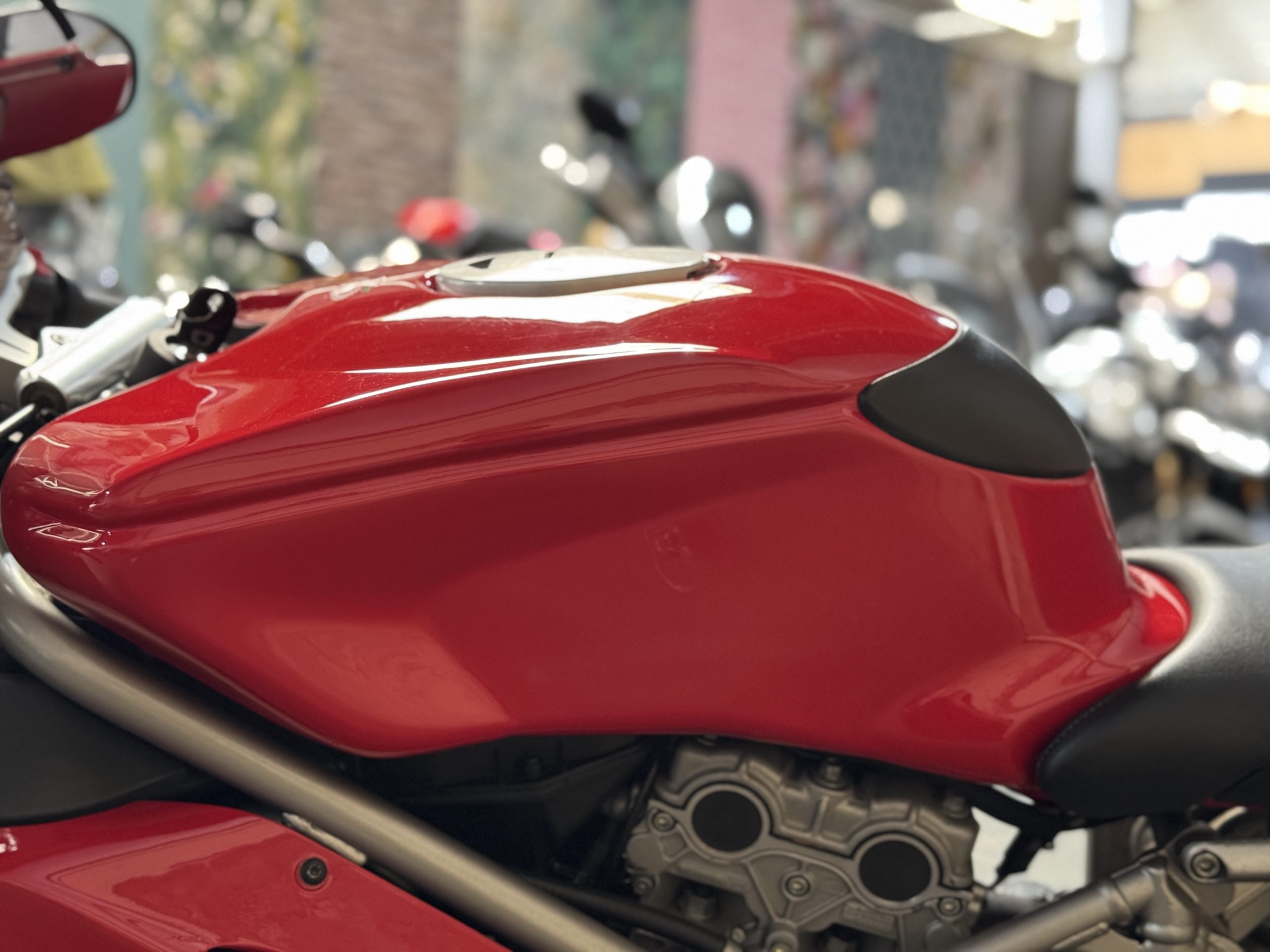 Other than the essential CNC open clutch cover and adjustable levers, it is pretty much stock, just how we like them! It’s an awful lot of very exotic bike for not a lot of money!
