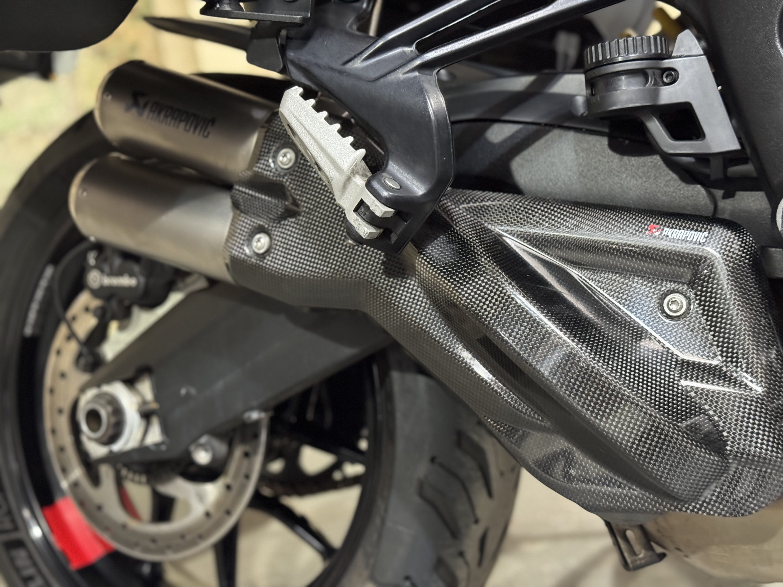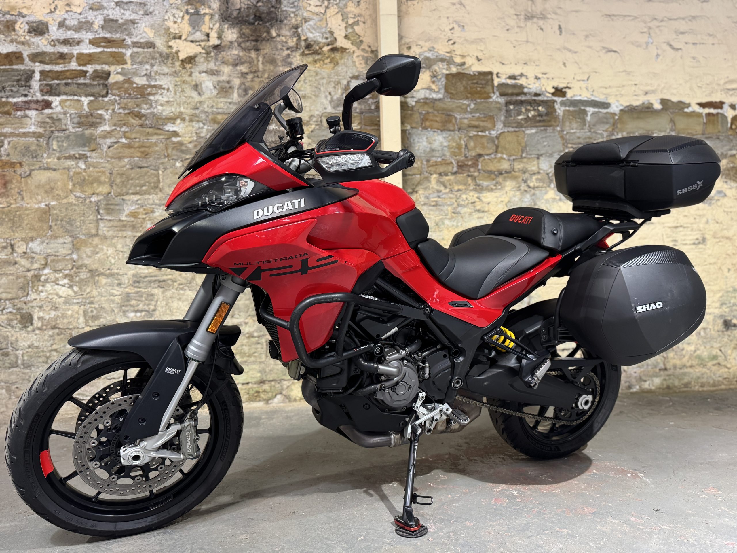 This S version has a huge spec, with a full luggage system, a full complement of electronics (including skyhook suspensions and by-directional quick-shifter), plus the wonderful sounding Akrapovic exhaust, engine crash bars as well as aftermarket heated seats and Ducati heated grips.
